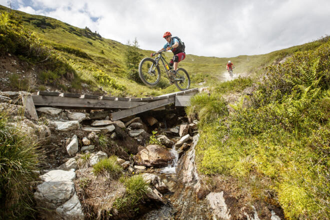 Mit kleinen Anliegern, Bachquerungen, Spitzkehren, leichten Wurzel- und Steinfeldern ist alles dabei, was ein Trailbiker-Herz höher schlagen lässt. Ein Ende findet die Strecke im Talschluss, von wo aus man gemütlich zurück nach Saalbach Hinterglemm oder weiter zum Ossmannalm Trail radeln kann. Zum Start des Hochalm Trails muss man aus eigener Kraft ca. 300 Höhenmeter - von der Bergstation der Reiterkogelbahn kommend - überwinden.