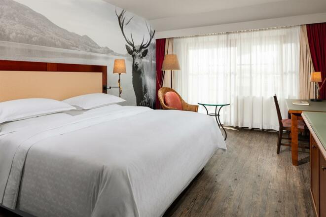 Nur 20 Minuten von Salzburg entfernt heißt Sie das elegante 4*S Sheraton Fuschlsee-Salzburg Hotel Jagdhof in ruhiger Lage oberhalb des Fuschlsees mit Blick auf die umliegenden Berge willkommen.