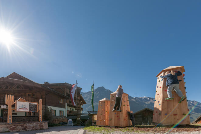 Von Sölden wandern sie an der Kirche vorbei einen schmalen asphaltierten Weg steil hinauf bis zum Ortsteil Innerwald.