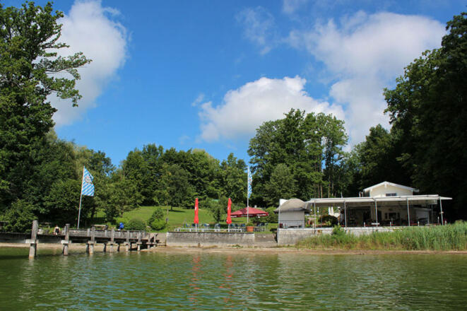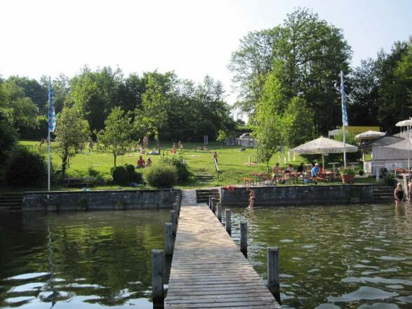 Für Badegästeoder Radler, die Erfrischung brauchen, stehen Badeplatz und Badesteg, sowie einPavillon für Eis, Getränke und kleine Speisen zur Verfügung.