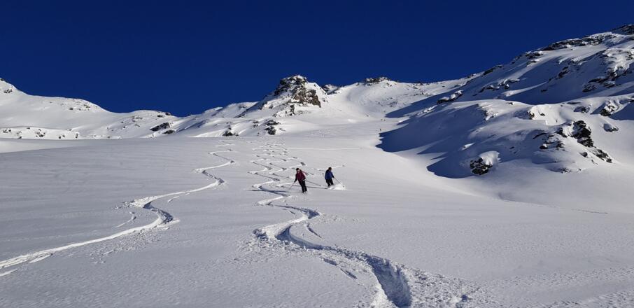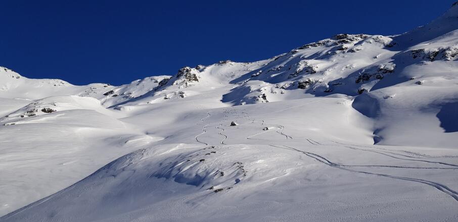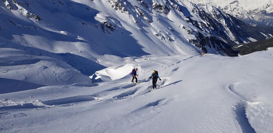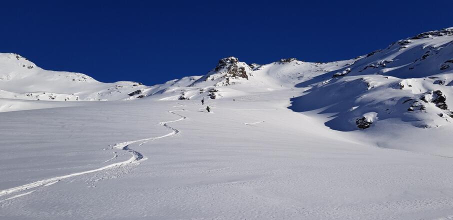 Für Liebhaber einsamer Touren, die auch vor einem längeren Talhatscher nicht zurückschrecken. Im Talschluß erwartet einen ein perfektes Skigelände mit mehreren Gipfelzielen.