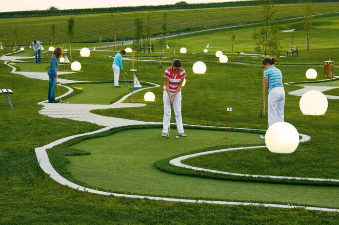 Golfen von 3 bis 103 Jahren. Sandbunker und viele natürliche Hindernisse gilt es während des Spiels zu überwinden. Gespielt wird mit echten Golfbällen und richtigen Golf-Puttern. Insgesamt haben die 18 Spielbahnen eine Länge von 185 m.