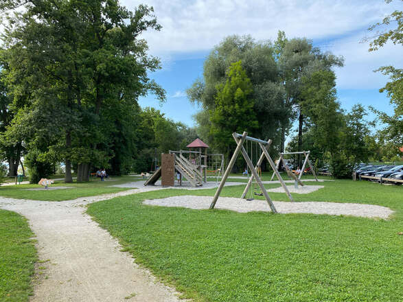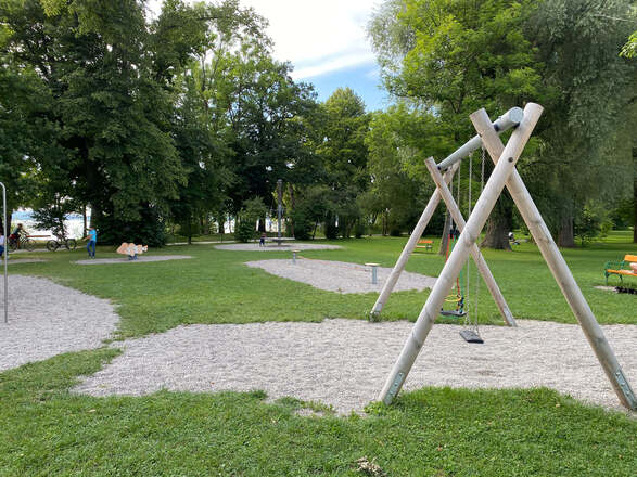 Direkt in Übersee-Feldwies. am See gelegener Kinderspielplatz im neuen, frei zugänglichen Chiemseepark.