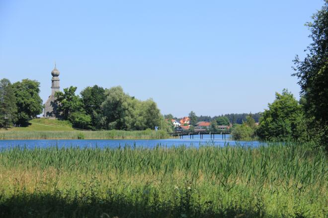 Ehemals zu Kloster Seeon gehörend und über einen Holzsteg zu erreichen im Ortsteil Bräuhausen. Seit dem 15. Jh. Wallfahrtkirche Einheitliche Altarausstattung von 1706 mit halbhohen Schnitzfiguren. Im Choraltar Muttergottes 2. Hälfte 17. Jh.