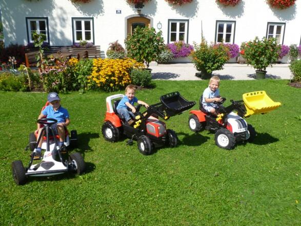 Auf unserem Bauernhof haben wir Kühe, Kälber, ein Schwein, Hühner, Katzen und ein Pony. Für die Kinder kann es ein Erlebnis sein, bei der Arbeit mitzuhelfen.