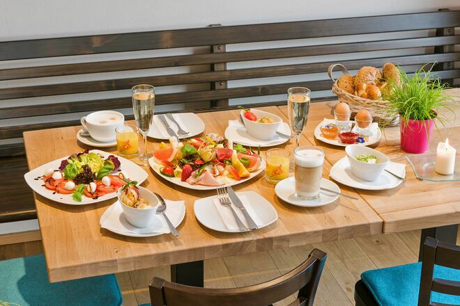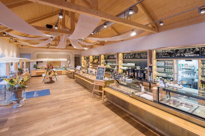 Neben den Köstlichkeiten aus der hauseigenen Bäckerei und Konditorei erwartet den Gast eine umfangreiche Genusskarte, wobei auch hier großer Wert auf ein regionales und saisonales Angebot gelegt wird. Besonders schätzen die Gäste das umfangreiche Frühstückangebot, den äußert gemütlichen Biergarten sowie die abwechslungsreichen kulinarischen- und musikalischen Eventabende.