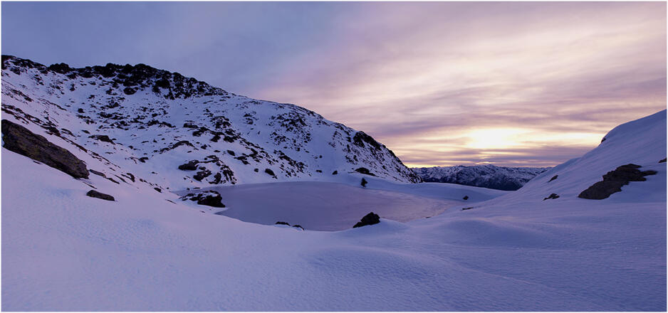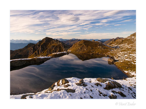 Der Steinkarlsee liegt nördl. des Rifflerkogels in einer Karmulde und ist normaler Weise bis in den Juni hinein unter Eis und Schnee. Schon morgen mit dem angekündigten Schneefall wird das Eis unter dem Schnee begraben liegen.