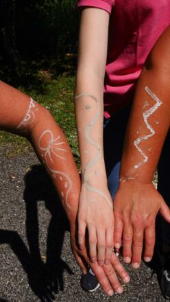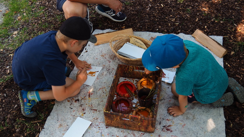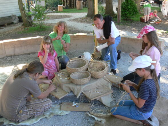 Schönes selber machen mit echten Fossilien, Knochenperlen, Federn und mehr. Stockbrot backen, Steine schleifen, Höhlenmalerei und arbeiten mit Feuerstein.