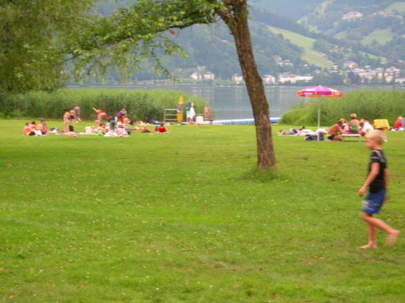 Wiesenstrand, sehr flach abfallend, Seebistro, Eis, Beachvolleyball