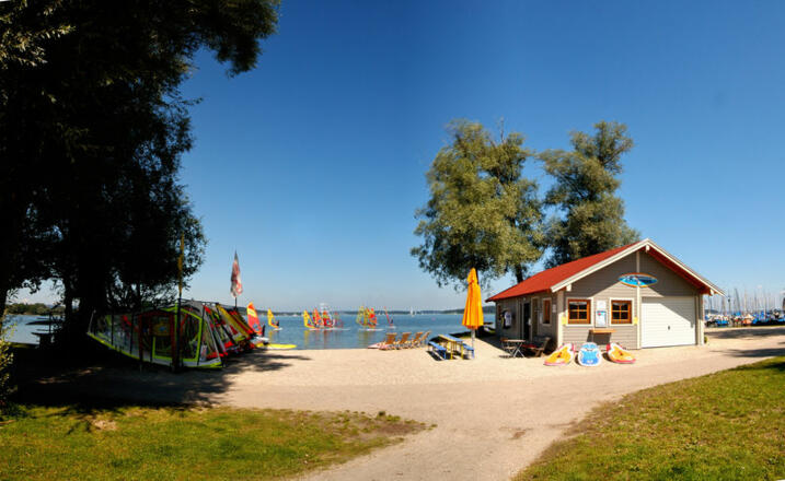 Neben dem Standort in Bernau-Felden gibt es auch eine neue Station in Seebruck direkt an der Alzbrücke. Von hier aus können Sie den sogenannten "Weitsee", den großen Ostteil des Chiemsees entdecken oder zu einer Tour auf der Alz starten.