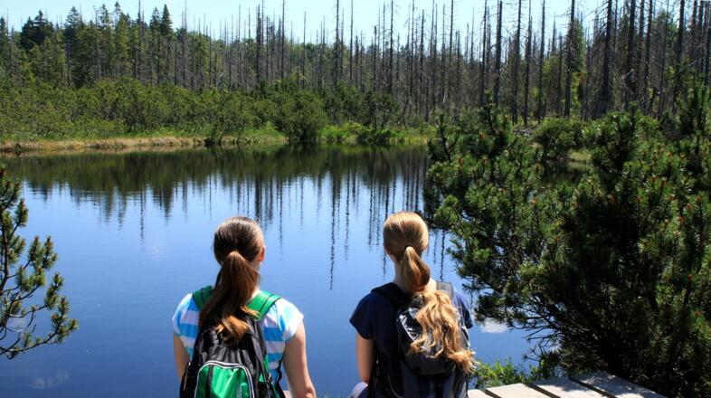 Die anspruchsvolle Tagestour führt von Buchenau zu den Schachten. Diese ehemaligen waldfreien Übernachtungsplätze für Hirten und ihre Tiere sind ökologisch und kulturhistorisch bedeutsame Inseln im Nationalpark Bayerischer Wald. Der Weg verläuft streckenweise auf Bohlenwegen durch mystische Moorflächen und zum geheimnisvollen dunklen Latschensee. Zurück geht es entlang der Trinkwassertalsperre Frauenau.