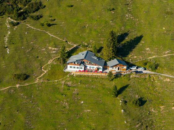 Westlich der Rotwand führt die Abfahrt durch die Triebgrube. Sie beginnt mit einer kleinen Steilstufe. Vorsicht! Hier befindet sich eine riesige Doline. Bei schlechter Sicht besteht Absturzgefahr. Hier steht auch eine Biwakhütte. Halten Sie sich im unteren Teil etwas nach links (Westen), bis Sie auf die Forststraße treffen. Auf dieser weiter bis Oberscheffau.