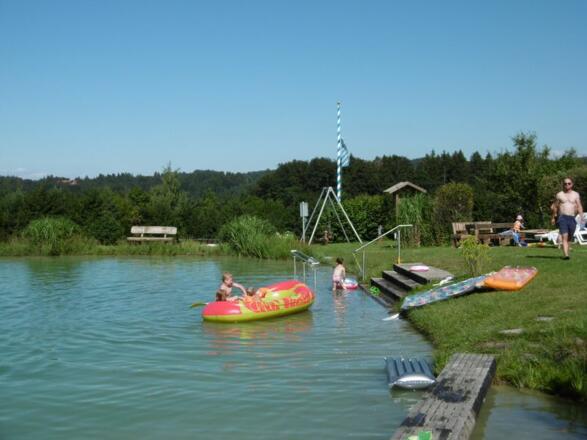 Am platzeigenen Badesee mit großer Spiel- und Liegewiese können Sie nach Ausflügen entspannen oder einfach relaxen und Sonne tanken. Für die Kinder gibts einen großzügigen Spielplatz, und - falls das Wetter einmal nicht so schön sein sollte - ein tolles Indoor-Spielzimmer (nicht bei Veranstaltungen).Am Kiosk finden Sie Tageszeitungen und alle Zutaten für's Frühstück wie z.B. frische Semmeln oder hausgemachte Marmeladen. Darüber hinaus bieten Ihnen der Campingplatz Frühstück mit regionalen Produkten sowie warme, kalte Imbisse und Brotzeiten auf Terrasse und im Gastraum an. (nur in Neben- u. Hauptsaison)