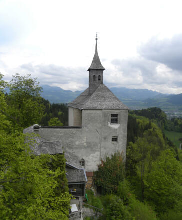 Es dürfte für jeden Naturliebhaber kaum einen idealeren Einstieg zum Wandern ins Kaisergebirge geben, als den Weg zur beliebten Wallfahrtskirche und den mächtigen Bergfried. Beide erheben sich weithin sichtbar auf dem Thierberg. Der imposante Bergfried ist eine nicht zu übertreffende Aussichtswarte. Der Prachtblick auf die Stadt, ins Thierseetal, nach Bayern und insbesondere auf das Herzstück des Kaisergebirges, den sanfteren Zahmen Kaiser, ins liebliche Kaisertal bis zu den schroffen Gipfeln und Felsfluchten des Wilden Kaisers lässt jedes Wandererherz höher schlagen. Die Burg wurde 1280 als Bollwerk gegen Norden von den Freundsbergern errichtet. Die Thierbergkapelle wird 1315 erstmals als Filiale der Pfarre Langkampfen erwähnt. Sie wurde Johannes dem Täufer geweiht, was im Altarbild und einem geschnitzten Haupt des Heiligen zum Ausdruck kommt. Die Abgeschiedenheit des Ortes zog Einsiedler an und so wurde der Thierberg mit seiner Kapelle zur Eremitage, die nachweislich von 1676 bis 1998 bestand. Die Einsiedler waren beim Volk beliebt, ihre Klausen wurden oft zu Wallfahrtsorten, so auch die Thierbergkapelle. Verehrt wird eine Marienstatue, die eine Nachbildung des Heiligtums in Montserrat in Spanien sein dürfte. Zu ihr führt ein Kreuzweg mit 14 Stationen, der beim Gasthof Neuhaus beginnt. Jeweils ab April wird jeden Mittwoch um 08.00 Uhr für die weit anreisenden Wallfahrer eine Messe zelebriert.