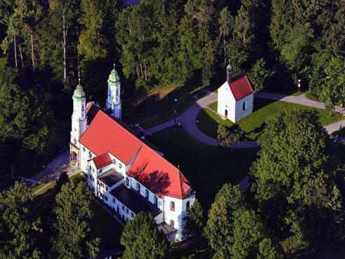 Von der Nockhergasse zweigen wir auf einen Treppenanstieg ab. Weiter bergan passieren wir zuerst den Ölberghügel mit den schlafenden Jüngern. Entlang des Anstiegs stehen 5 Kapellen mit den 14 Kreuzwegstationen. Am oberen Ende erhebt sich über der Kerkerkapelle der Hügel mit der Kreuzigungsgruppe. Auf dem Gipfel des Kalvarienberges schließlich steht die Heilig-Kreuzkirche, die ungewöhnlicherweise aus drei Teilen besteht. Gleich daneben befindet sich die Leonhardikapelle, die nach einem Gelöbnis anlässlich der glücklichen Rückkehr aus der Sendlinger Mordweihnacht erbaut wurde. Heute steht sie vor allem im Mittelpunkt der Tölzer Leonhardifahrt am 6.November. An der Kapelle vorbei geht es nun wieder leicht bergab und wir biegen dann nach links in den Weg ein, der Richtung Stadt führt. Dieser Weg entspricht dem Geokulturpfad, der an dieser Stelle geprägt ist durch die immer wieder sichtbaren Nagelfluhfelsen. Bald erreichen wir bergab unseren Ausgangspunkt, die Nockhergasse.