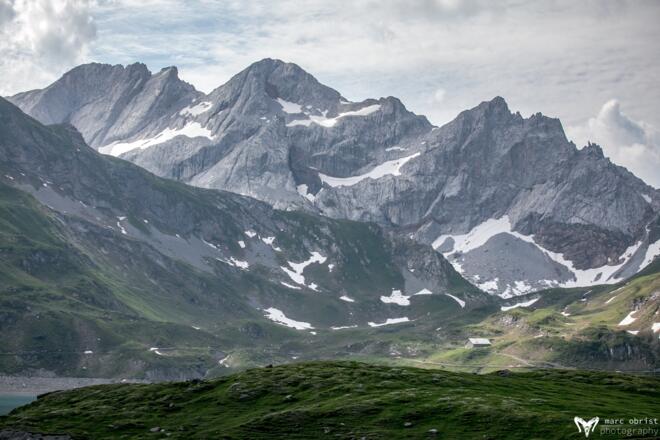 Die Totalphütte liegt auf 2.385 m Höhe oberhalb des Lünsersees auf einem kleinen Plateau, umgeben von herrlichen Kletter- und Wanderbergen auf halbem Weg zur Schesaplana.