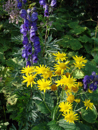 In solch einem Karrenfeld bildet sich normalerweise kaum eine Bodenauflage und nachdem das meiste Wasser durch die senkrechten Klüfte schnell nach unten abgeführt wird, ist es oft auch recht trocken. Die Schratten auf dem Besler sind jedoch immer wieder mit feiner Erde aufgefüllt und können deshalb das Regenwasser länger speichern. Dort wachsen dann verhältnismäßig anspruchsvolle Pflanzen, wie der Blaue Eisenhut. Bei ihm ist übrigens Vorsicht angesagt, denn er gilt als die giftigste Pflanze Europas. Ihm kann man im Spätsommer auch beim Abstieg zur Schönberg-Alpe begegnen. Mit etwas Glück begegnet man dort im Sommer auch einem absoluten Bergspezialisten unter den Tieren, der Gämse.