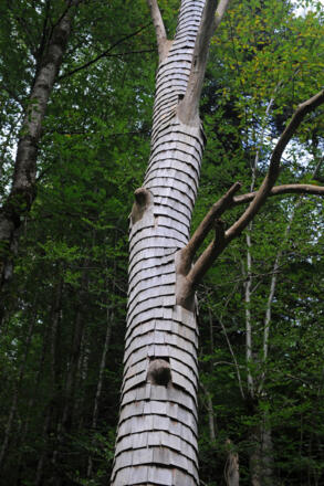 Die Langenegger Bürger haben Plätze, an denen natürliche Energieflüsse spürbar werden, erfasst und auf ihrem Energieportale- und Skulpturenweg erlebbar gemacht. Diese Rundwanderung führt gleich an mehreren solchen Portalen und Skulpturen vorbei. Besonders sehenswert ist das Energieportal an der Bregenzerach: Neun Künstler haben sich hier intensiv mit dem Material Holz beschäftigt und jeweils einen Baum auf ganz unterschiedliche Art und Weise bearbeitet.