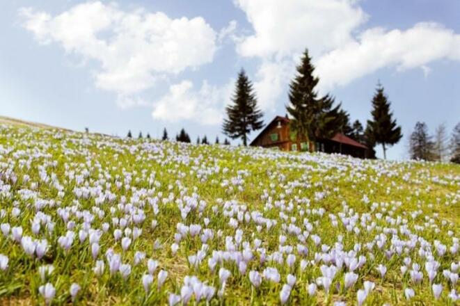 Unmittelbar nach der Schneeschmelze blühen im Bereich des Hündlekopfs unzählige Krokusse. Die Alpwiesen verwandeln sich für wenige Tage in ein regelrechtes Blütenmeer.