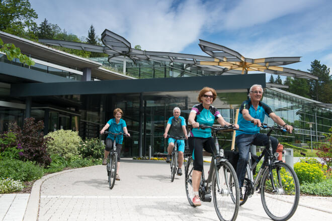 Ausgangspunkt dieser 50 Kilometer langen Rundtour, die zum Besuch von zwei Thermalbädern mit üppigen Wellness-Landschaften verführt, ist die ThermeNatur Bad Rodach. Zunächst geht es über einen kleinen Anstieg mit anschließender rasanter Abfahrt in den Kurort Bad Colberg. Wohl wissend, dass noch gut 40 km vor uns liegen, gönnen wir hier unserem Körper einen ersten Aufenthalt in der Therme mit ihrer imposanten Glasfassade. Aber Vorsicht: Das Terrassenbad mit seinen 11 Becken, Dampfgrotte, Solebecken und vielem mehr macht es uns nicht leicht, wieder aufzubrechen. Vor uns liegt nun Mittelalter pur. Mit Ummerstadt erreichen wir einen Ort, der sich seit 400 Jahren kaum zu verändert haben scheint. Im Fachwerk-Dorf Gemünda zweigt ein Abstecher nach Seßlach ab. Diese nahezu unverändert erhaltene Stadt mag kleiner als Rothenburg o. d. Tauber sein, ist aber mindestens so romantisch - und vor allem nicht vom Massentourismus überlaufen. Durch saftig grüne Flussauen, Wiesen und Felder geht es weiter in die nächste mittelalterliche Bilderbuchstadt, das von einer Veste mit Deutschem Burgenmuseum gekrönte Heldburg. Nach einer Berg- und Talfahrt über die Kuppe eines erloschenen Vulkans rollen wir wieder in Bad Rodach ein. Dort gönnen wir unserem Körper einen zweiten Thermalbad-Besuch in der ThermeNatur ... mit einer Massage für unsere doch etwas müde gewordenen Beine.