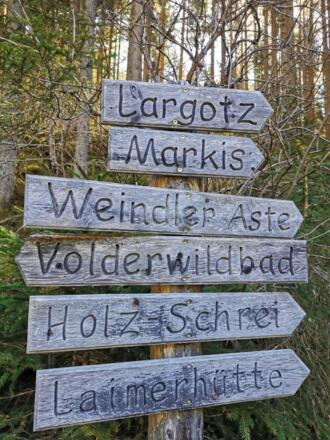 Von Volderwildbad (1.104 m) aus beginnt diese Bike-Tour gleich mit einer sehr Kräfte raubenden ersten Steigung. Nach dieser teilt sich der Weg, wobei man sich links halten muss. Nach weiteren rund fünfzig Höhenmeter gabelt sich der Weg erneut, hier gilt es wieder links abzubiegen. Danach führt ein Schotterweg durch einen schönen Wald, vorbei an der Weindlaste (1.525 m) bis dann der Biker zur Jagdhütte gelangt.