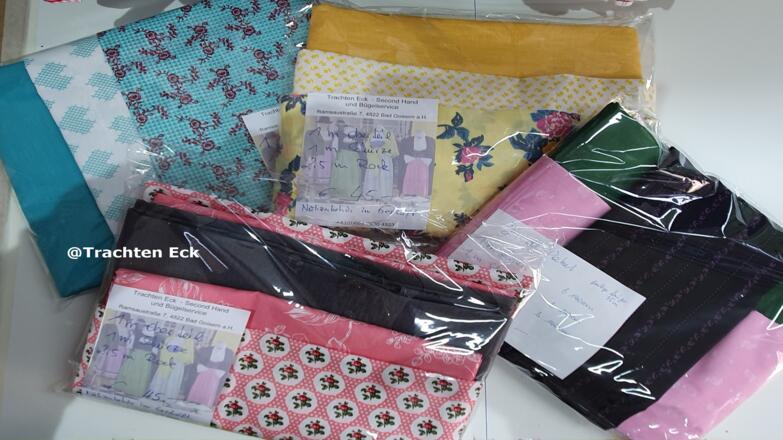 Zusätzlich biete ich hochwertige Baumwolldrucke, Leinen und Nähzubehör an. Viele Kombinationsmöglichkeiten für das eigene Dirndl sind möglich.