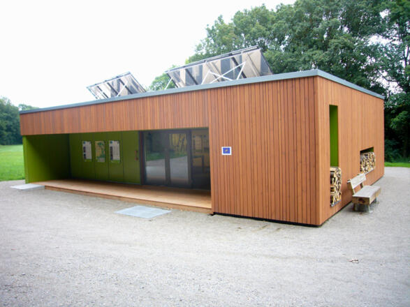 Eine Rast bietet sich am Mittelwald-Informationspavillon auf den gemütlichen Liegen an.