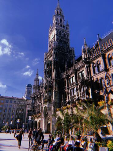 Falls Du Deine Tour Vormittags startest hast Du gute Chancen um das berühmte Glockenspiel im Turm des Neuen Rathauses zu hören. Jeden Tag pünktlich um 11:00 und um 12:00 Uhr können Zuschauer aus aller Welt die bunten Figuren bei ihrem Tanz zur Glockenmelodie bewundern. Von März bis Oktober zusätzlich um 17 Uhr.