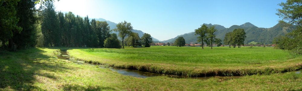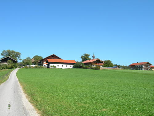 Von der Tourist Info nach links in die Kampenwandstraße - beim Ratskeller auf dem Lochbachdamm links in die Aufhamer Straße - hier bis zum Feldkreuz in Aufham - auf dem Feldweg nach Westen bis zur Orth. Kinderklinik - dort Bernauer Straße überqueren - in die Höhenbergstraße einschwenken - Beschilderung zum Natur-Moorfreischwimmbad folgen - vor dem Moorbad hinauf zum Café Pauli und nach Höhenberg. Zurück und direkt am Natur-Moorfreischwimmbad-Eingang vorbei - auf dem Steg den Seebach überqueren - Fußweg entlang dem Schafelbach bis Campingplatz am Moor - Bernauer Straße überqueren - am Bauernhof in Innerkoy vorbei - hier rechts auf dem Feldweg östlich des Natur-Freischwimmbades entlang - über Aufham zurück zum Ausgangspunkt.