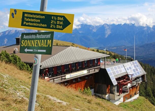 Am Gipfel des Wank kannst du im Wankhaus einkehren oder in der Sonnen-Alm in der Bergstation.