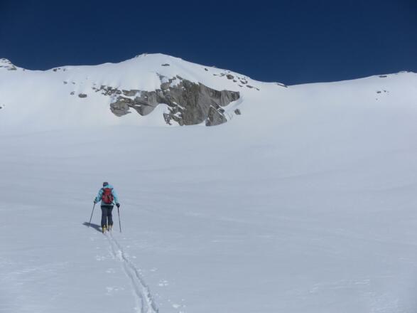 Je nach Jahreszeit können Firn- und Eisfelder die überqwert werden müssen etwas größer oder kleiner sein. Die Überquerung des Gletschers ist nicht schwierig, aber dennoch sollten sie nicht unterschätzt werden, auch hier gibt es Gletscherspalten!