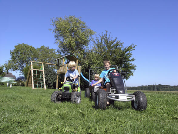Bewirtschafteter, familienfreundlicher Bauernhof in ruhiger Lage am Ortsrand mit freiem Bergblick, Terrasse, 7 Minuten zum Badestrand, Balkonbestuhlung, Grillmöglichkeiten, Kinderspielplatz mit Kleinfahrzeugen, Tischtennis, Billard, Liegewiese, Grünlandbetrieb mit Kühen, Kälbern, Katzen und Hasen.