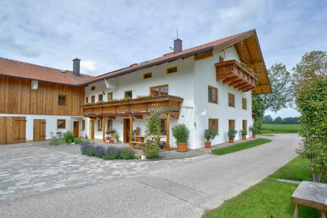 Anreise über die Autobahn A8 München-Salzburg, Ausfahrt Ausfahrt Chieming/Grabenstätt - Richtung Chieming - Traunreut fahren, an der Ampelanlage (nach Ortsdurchfahrt Chieming) links nach Seebruck fahren, über die Alzbrücke dem Straßenverlauf folgen, dann 2. Abzweigung nach Obing - Seeon nehmen, im Ort Seeon - (nach Bäckerei/Apotheke) links einbiegen in die Weinbergstraße, die 4. Straße auf der rechten Seite ist der Waltenbergweg - unser Hof liegt auf der Anhöhe.