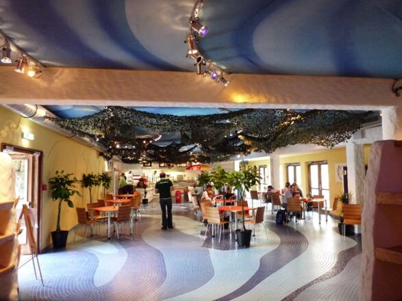 Genießen Sie den Cocktail am Gartenteich oder im Restaurant und anschließend ein gemütliches Mittag- oder Abendessen im überdachten Innenhof – ein nicht alltäglicher Rahmen für Kunden, die das Besondere suchen!