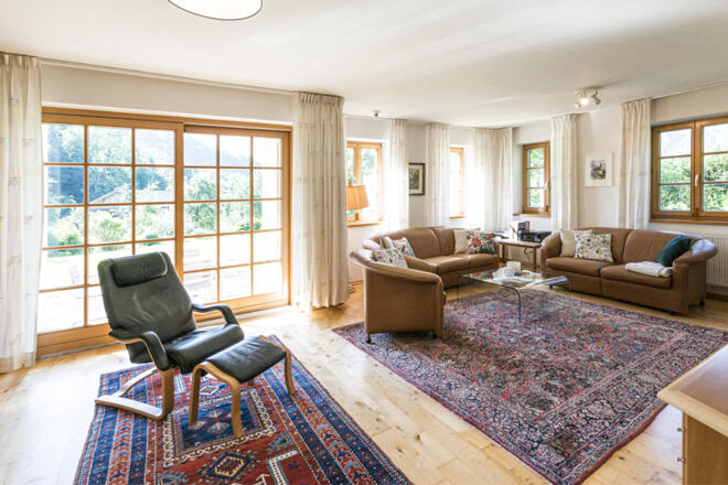 So besticht das Haus selbst durch seine hellen, lichtdurchfluteten Räume und den einzigartigen Blick auf den Dachstein. Hinter der Haustüre öffnet sich die Galerie des Hauses und geradeaus finden Sie das großzügige Wohnzimmer mit angeschlossener Terrasse und die gemütliche Wohnküche. Hier strahlt Ihnen die Morgensonne entgegen.