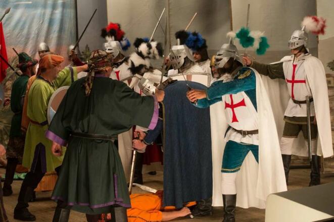 Eine Besonderheit ist auch die Bühne im Theaterhaus von 1833. Sie ist in Mitteleuropa die noch einzig regelmäßig bespielte Bühne dieser Bauart: die intakte barocke Drehflügel-Kulissenbühne hat manuell klappbare Seitenkulissen und gemalte Prospekte. Auch Gewitter, Sturm und Regen sind bei den Ritterschauspielen "Handarbeit" und klingen zuweilen perfekter als in der Natur. Sänger und Musikanten spielen live vor und hinter der Bühne auf.