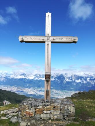 Am Gipfel angekommen genießen wir den Tief - und Ausblick bevor es wieder entlang der Forststraße runter zur Tulfeinalm und weiter zur Bergstation der Glungezerbahn geht.