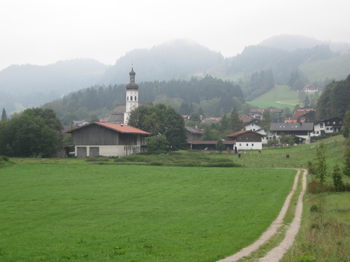 Dorfplatz in Sachrang (Alternativ Wanderparkplatz Geigelstein / Priener Hütte)