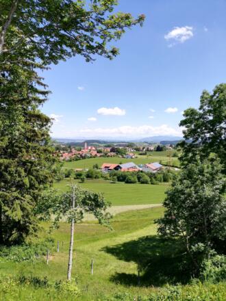 Vom Marktplatz Wiggensbach wandern wir zum Ortsteil Egg, wo wir nach links in Richtung "Burgstätte" abbiegen. Über einen Feldweg gelangen wir über einen mäßig steilen Anstieg zur ehemaligen Burgstelle Wiggensbach. Hier stand die ehemalige Burg Suseck, an die heute noch eine Gedenktafel erinnert. Der Burgname Suseck wurde 1443 erstmals genannt und bedeutet wohl „sausendes Eck“ oder „Südeck“, eine Stelle, an der der Wind heftig pfeift. Tatsächlich weht an der alten Burgstelle auch an sonnigen Sommertagen immer ein kräftiges Lüftchen. Von der Burgstelle aus gehen wir rechts am "Gästehaus Schwarz" vorbei und können dann auf dem Weg bis Westenried die herrliche Aussicht ins Illertal genießen. An der Straßenkreuzung überqueren wir die Straße und gelangen über einen Spazierweg zum Ortsteil Haggen. Weiter geht es über Hino zurück nach Wiggensbach.