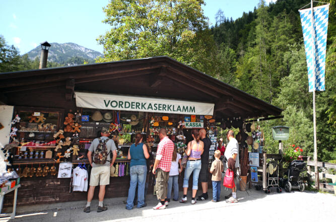 Entweder kurz nach der Abzweigung von der Bundesstraße (ca. 1 Stunde Fußmarsch) oder direkt beim Eingang zur Vorderkaserklamm. Beide Parkplätze sind kostenfrei.
