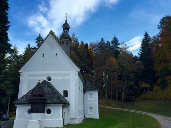 Ab Nußdorf führt zur Kirche ebenso ein mittelsteiler Weg durch den Wald. Der Aufstieg dauert circa 45 Minuten.