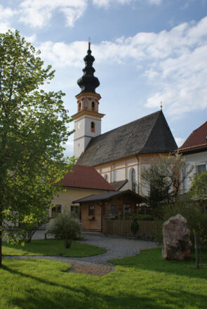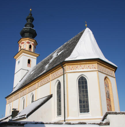 Die Kirche mit ihrem weithin sichtbaren barocken Zwiebelturm, ihrem historisch wertvollen Hochaltar und den einzigartigen Malereien im Innenraum ist eines der schönsten Gotteshäuser im Rupertiwinkel und für Kunstkenner aus nah und fern ein beliebtes Ziel.