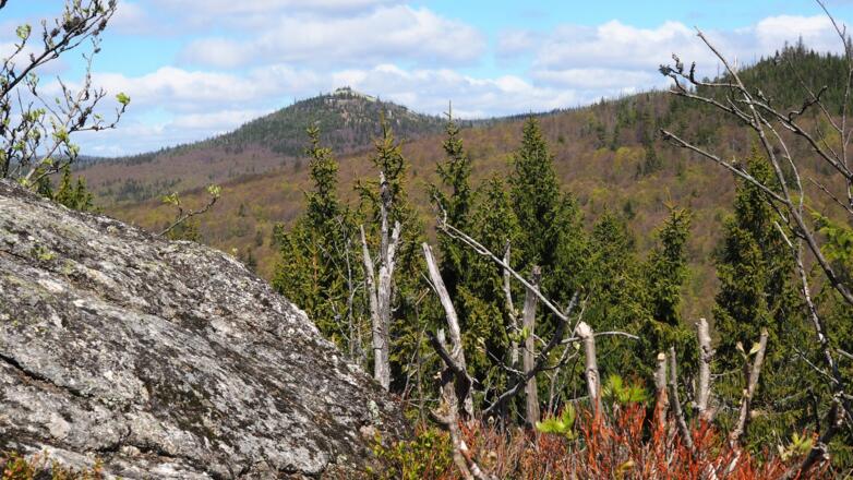 Das Großalmeyerschloss ist eine Felsformation am höchsten Punkt des Hohlsteins (1196 m ü. NN). Der Felsen steht hoch über dem Reschbachtal und bietet deshalb beste Aussicht in die Nationalparkregion - nach Finsterau und Freyung, aber auch auf die höchsten Nationalparkgipfel vom Lusen bis zum Rachel.