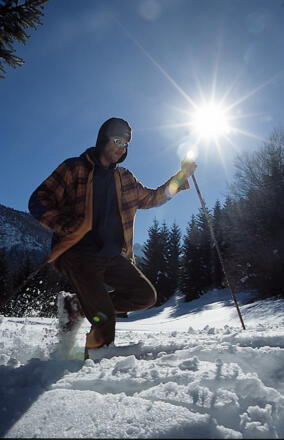 - Schneeschuhe, Stöcke und Winterwanderstiefel