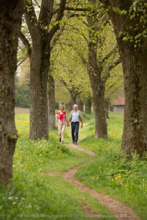 Dreistündige Wandertour durch eine idyllische Landschaft, bei Föhnlage mit herrlicher Weitsicht zu den Bergen der Allgäuer Alpen.