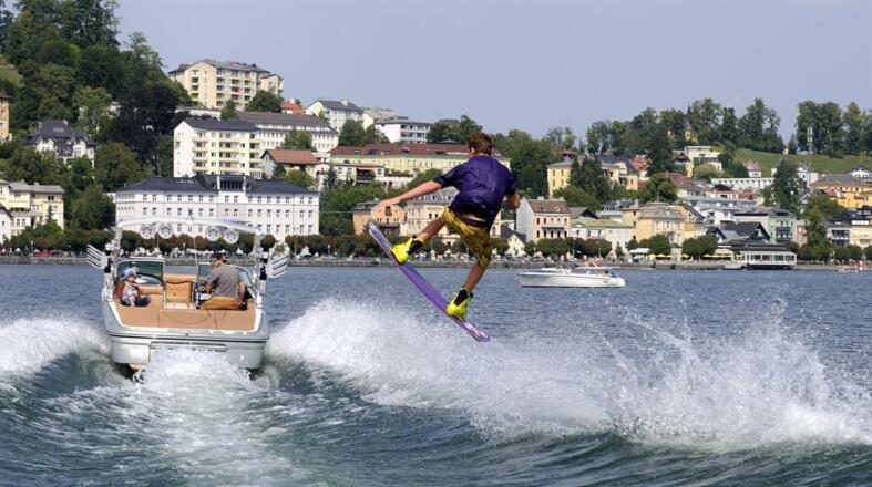 Die Wassersport-Basis am Ostufer des Traunsees - idyllisch gelegen an der Uferstrasse mit Blick auf Gmunden Wakeboard- & Wakesurf- Grundkurse/Perfektionskurs in Einzelod. Gruppenunterricht (bis zu 15 Pers.), SUP (Stand-Up-Paddeln) – Seewanderungen (bis zu 10 Pers.), Kajakverleih, Powerboat-Rides für bis zu 15 Personen. 2 Powervolle Boote stehen zur Verfügung – einzigartig in Österreich: Mastercraft X-Star (450 PS) und Sea Doo Challenger 210 (2 x 210 PS Jetantrieb)