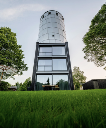 Die Ferienwohnung für zwei Personen liegt im zweiten Stockwerk des Turms. Durch den Zugang über das halbrunde Treppenhaus taucht man ein in eine ganz besondere Welt der Architektur und Innenarchitektur. Diese Welt hat ein modernes Ambiente schafft jedoch den Spagat zur Gemütlichkeit mit Relikten aus vergangenen Zeiten. Das Industriedenkmal Wasserturm hält trotz der Generalsanierung in den Wohnräumen Einzug. Wohn- und Essbereich mit Küche, Schlafzimmer und Badezimmer integrieren sich geschickt in die Rundungen des Turms. Die maßgefertigten Möbel aus der Manufaktur der Eigentümer zeugen von hoher Handwerkskunst und runden das besondere und hochwertige Wohngefühl ab.