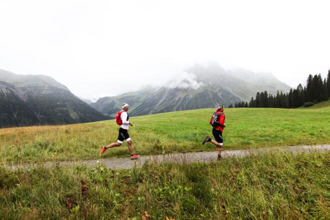 Gutes Schuhwerk (knöchelhoch, Profilsohle), Regenschutz, Lech Card und Busfahrplan.