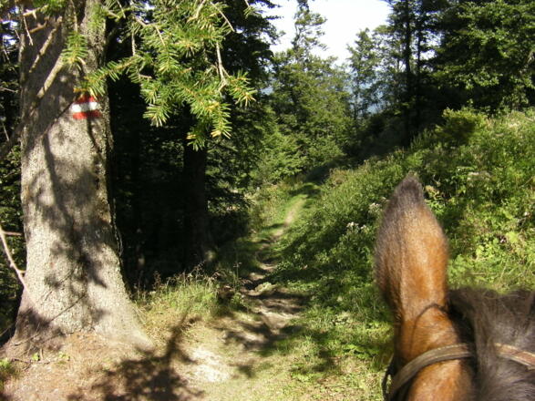 Die Benützung der Reitwege erfolgt auf eigene Gefahr. Landschaftlich reizvolle Elemente (Berge, Täler, Felsen, Schluchten…) sind natürliche Gefahrenstellen und erfordern Reserven bei der Zeitplanung.