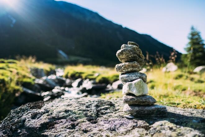 Bergschuhe, Trinkflasche, evtl. Wanderstöcke, wetterfeste Bekleidung